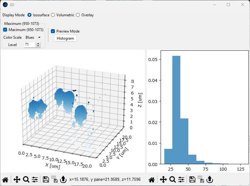 Fig. 5.19 The 3D isosurface rendering view with histogram display.#