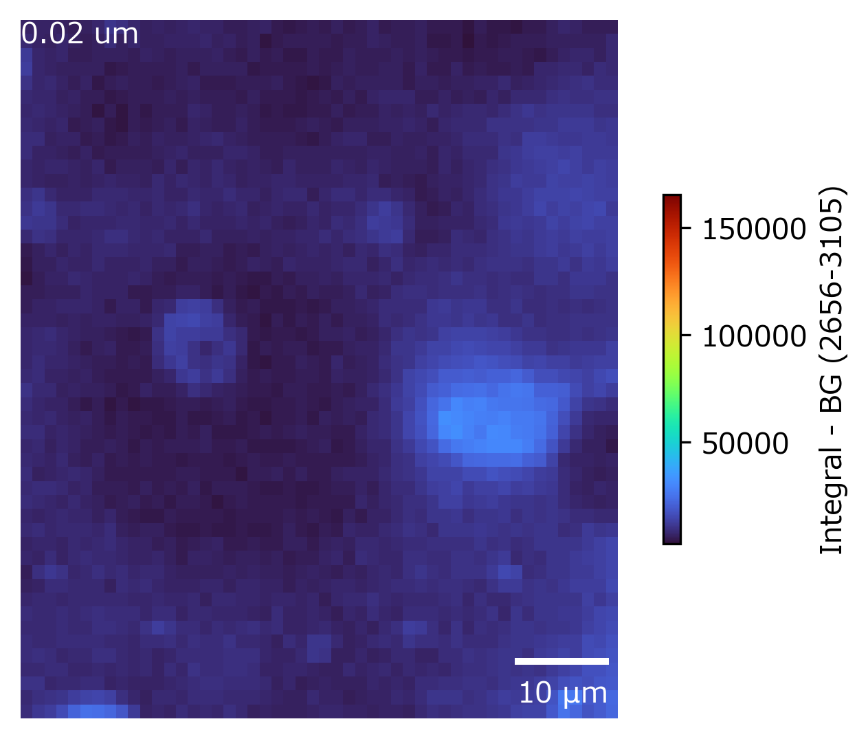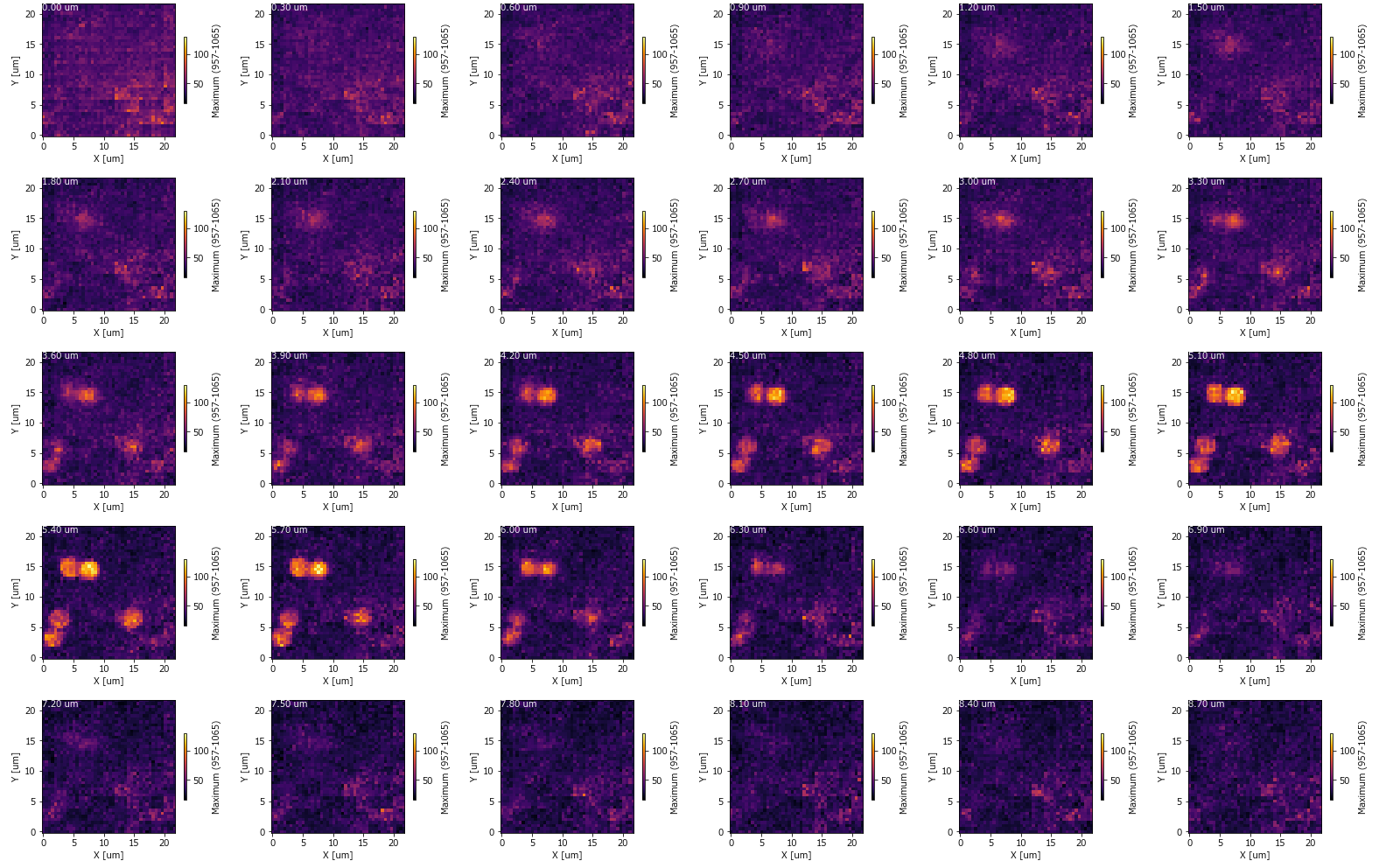 Displaying in a new window can be advantageous as it gives more freedom for adjusting the color scale. When displayed in the multi-area view, default color scaling is from the minimum to the maximum of the entire dataset, i.e. all scan areas. When displayed in a single window, color scaling is performed only for the selected area.