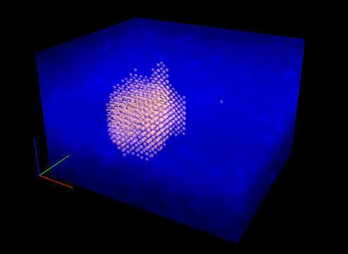 Point Cloud: Individual datapoints are plotted as spheres (following interpolation onto a regularly spaced grid) with the diameter and opacity of the spheres scaled by the local intensity.